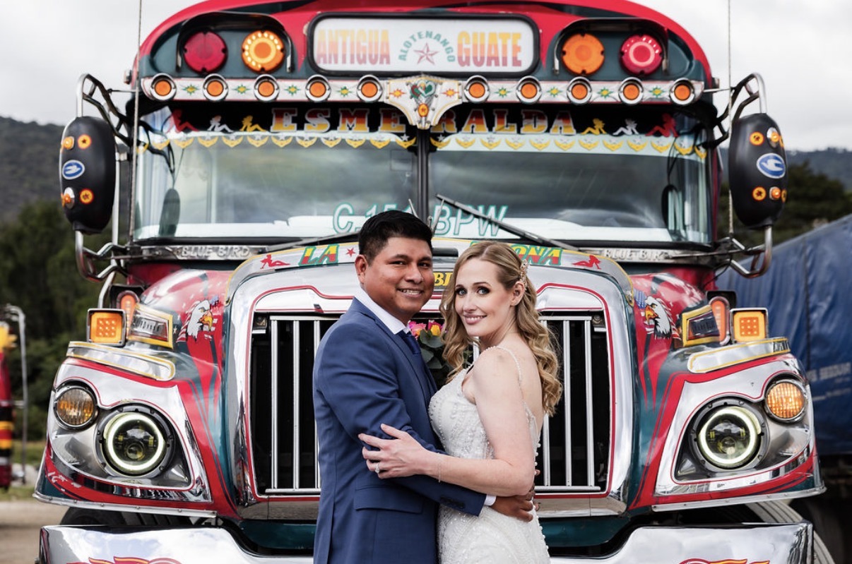 After the ceremony, we took photos at the La Recolección ruins, letting the centuries-old walls witness the beginning of our marriage. Later, we did something completely unexpected and totally us—we took more photos at a colectivo bus terminal, embracing the everyday life, color, and movement of Guatemala. It felt real, unfiltered, and joyful.